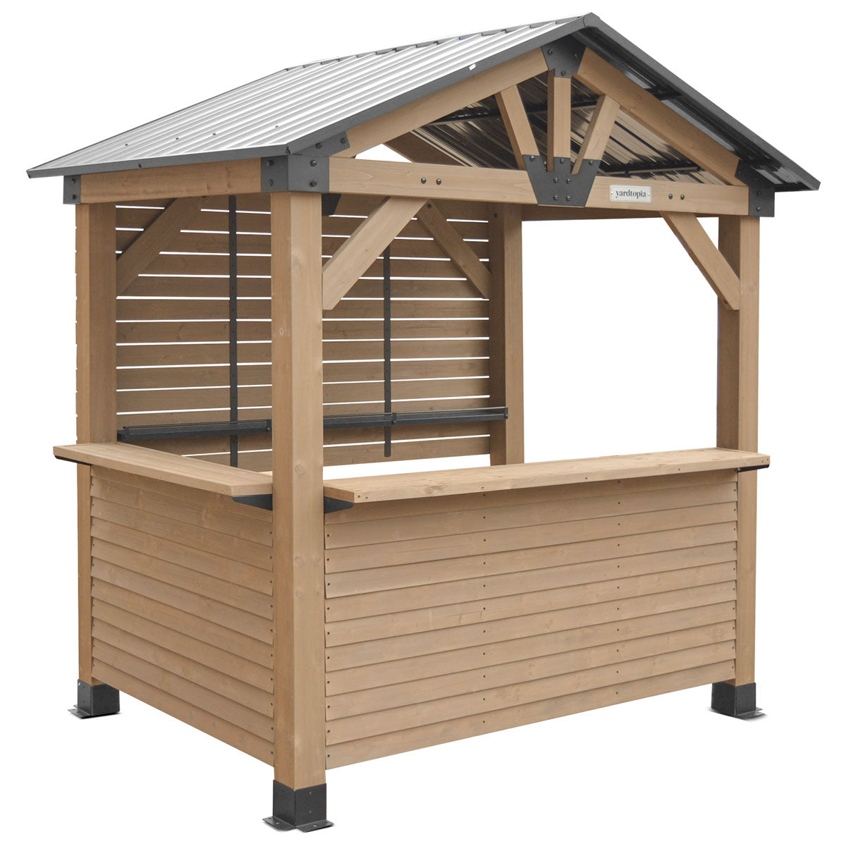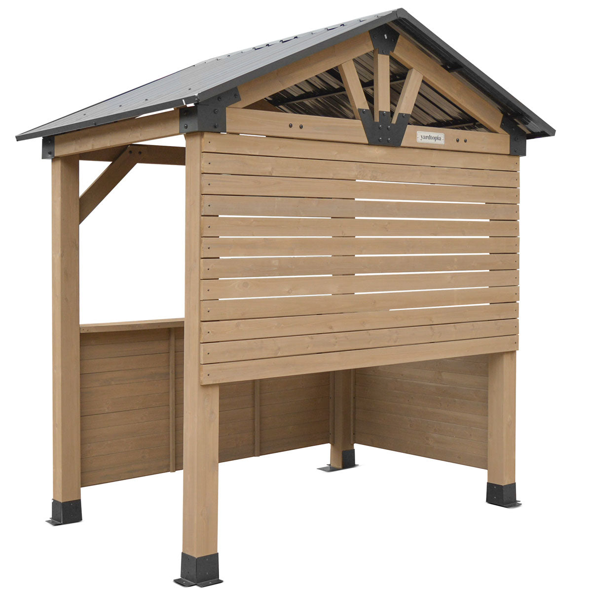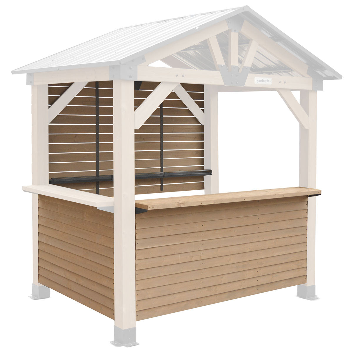 The Yardtopia Oslo Bar Add-On transforms your pergola into a functional bar and entertaining space. This add-on creates a front-facing counter with an extended ledge for comfortable bar stool seating, plus a rear counter wall for hanging accessories.Delivery