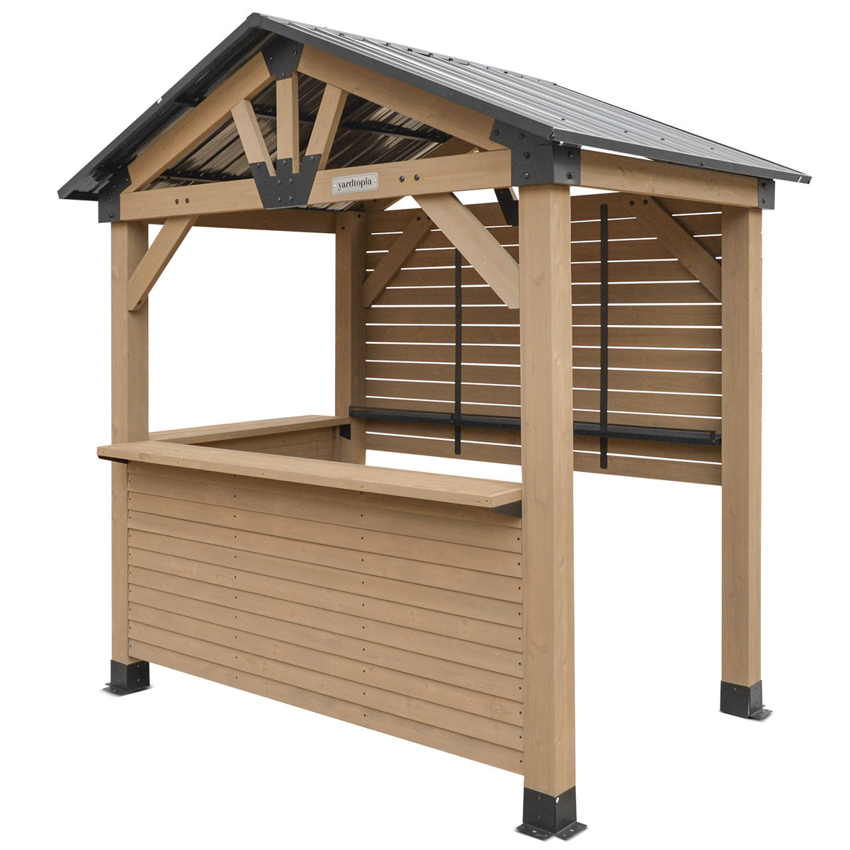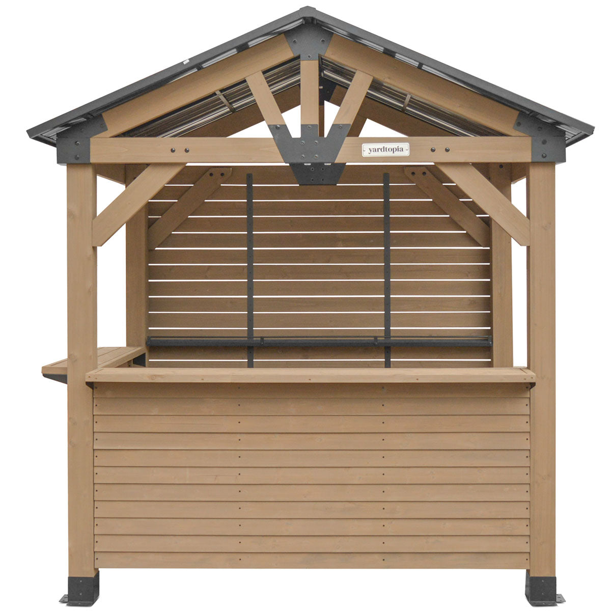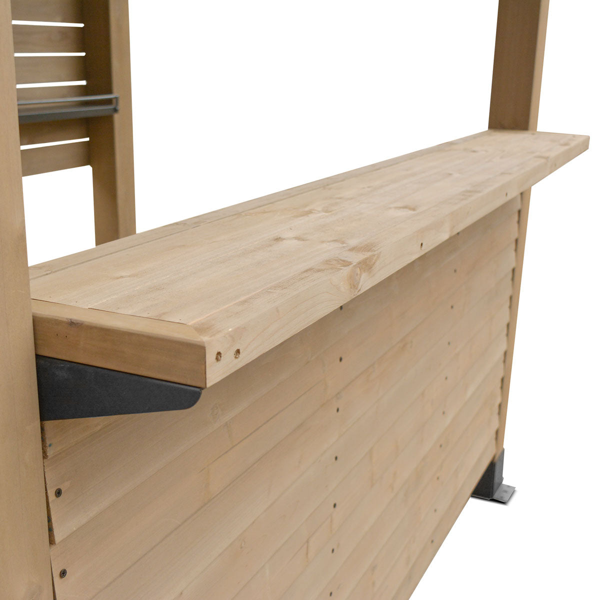 Add front counter walls and a rear utility wall to your existing Oslo Gazebo and turn it into an entertainment bar for the family and friends. With an generously extended ledge, your patrons will be able to pull up a stool and enjoy a bar-style environment.