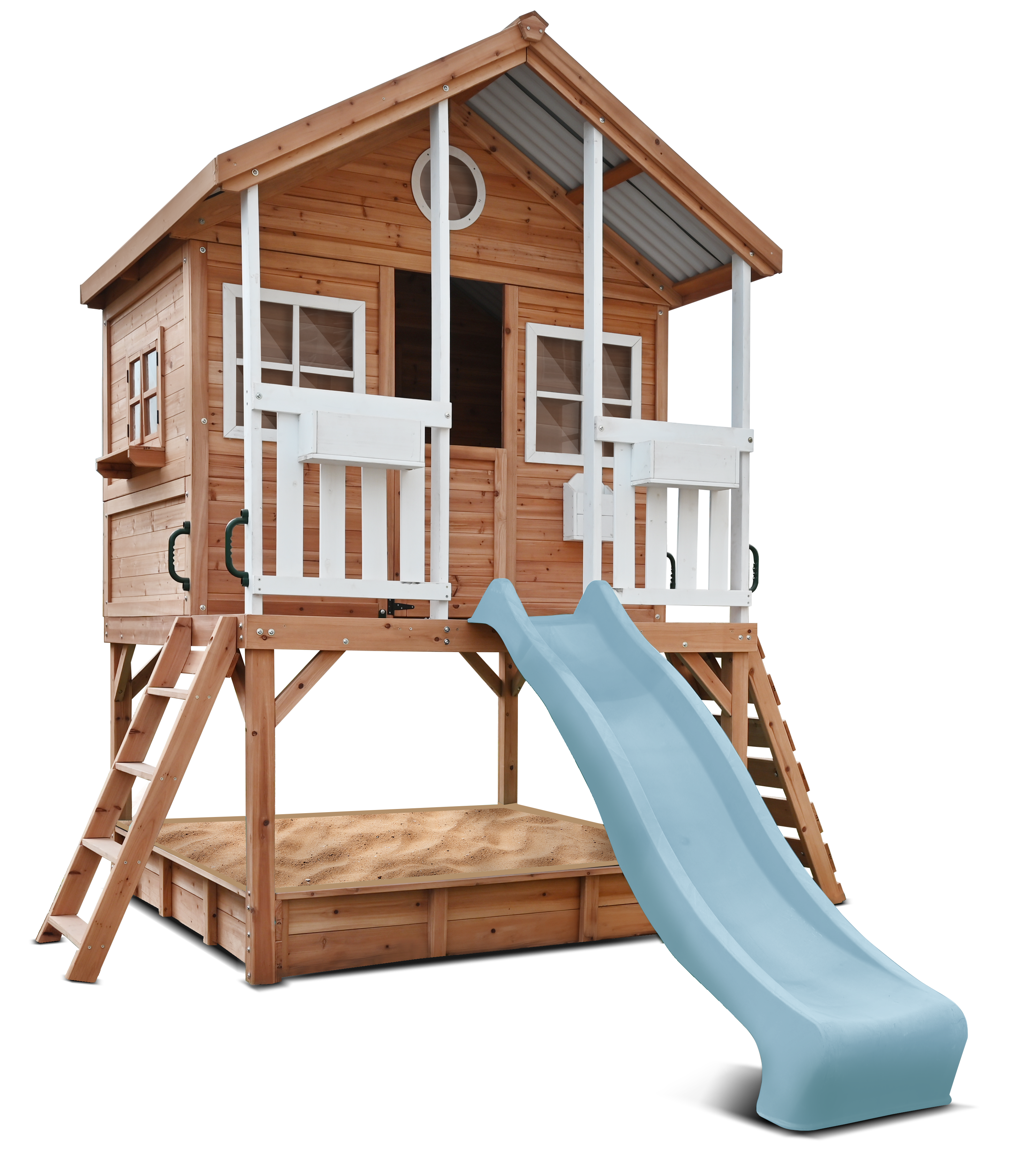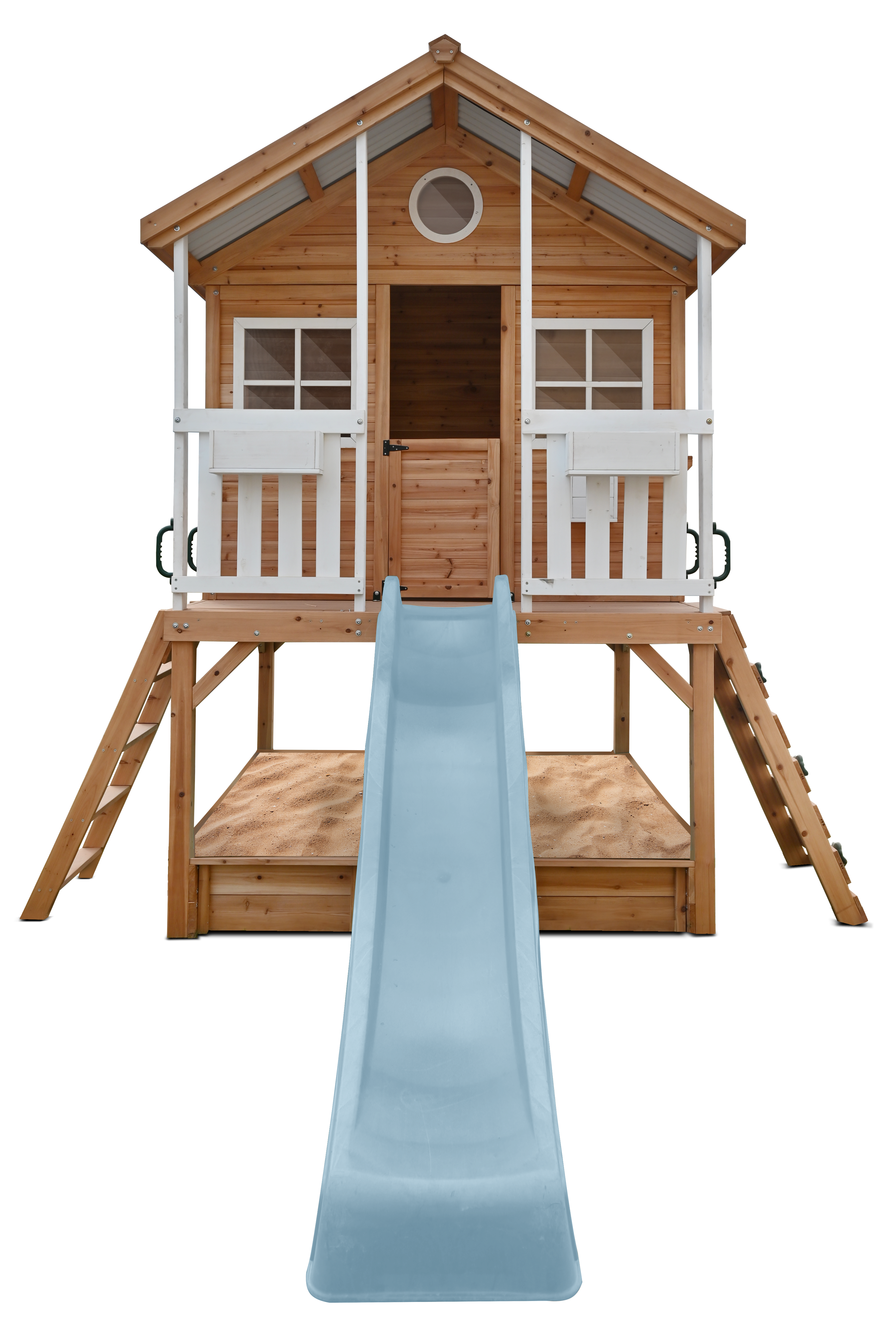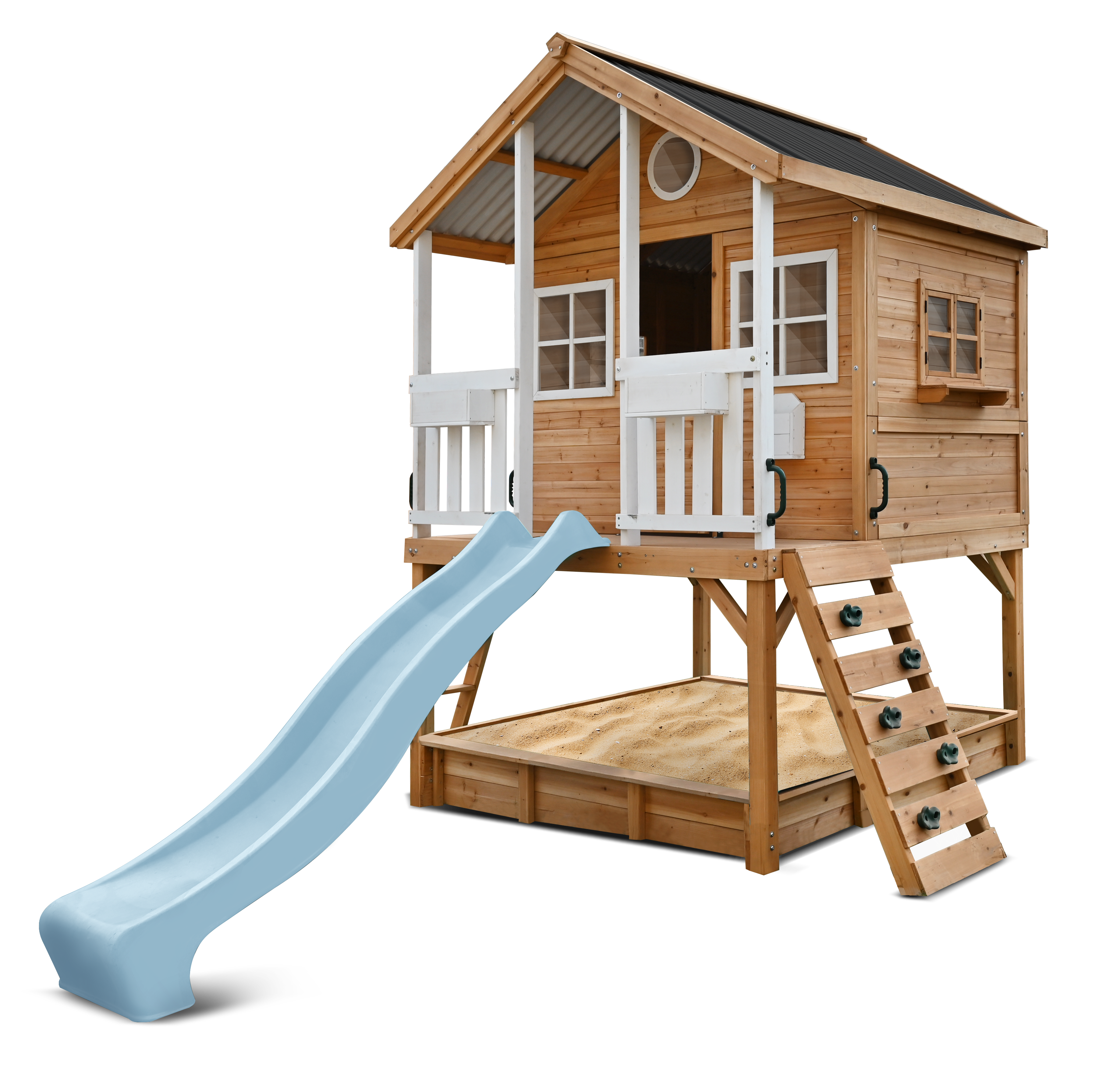 Take your children's play experiences to new heights. The elevation adds an extra layer of excitement and imagination to playtime that all kids love. Enjoy an adventurous climb, descend the slide or simply enjoy the view.