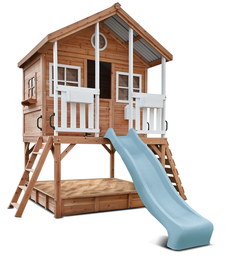 Winchester Cubby House (Elevated 1.2m) with 2.2m Slide (Pastel Blue)