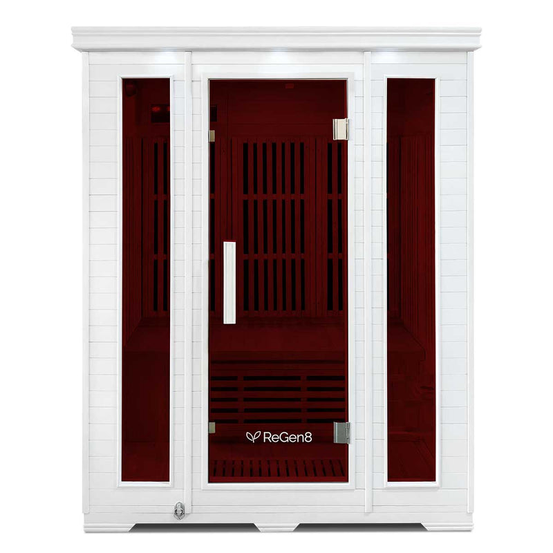 Elevate your wellness experience with the ReGen8 Trio Infrared Sauna, designed to accommodate three people comfortably, making it perfect for friends and family to enjoy together. This spacious sauna features advanced infrared heating technology that delivers deep, soothing warmth to improve circulation and relieve muscle tension. Crafted from durable Hemlock wood, the ReGen8 Trio is both durable and fits in with your cosy home aesthetic. All our saunas have been rigorously tested to meet strict standards, ensuring low EMF emissions and built-in safety features. Create cherished memories and prioritise your health in this inviting sauna that beautifully blends comfort and innovation.