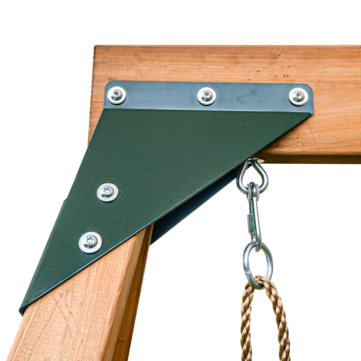 The Birmingham Play Centre Set is built to last with high strength steel brackets, ensuring maximum stability and durability. Each metal component is powder-coated, offering the best protection against the elements. This advanced coating prevents rust and wear, keeping the playset safe and looking great for years.