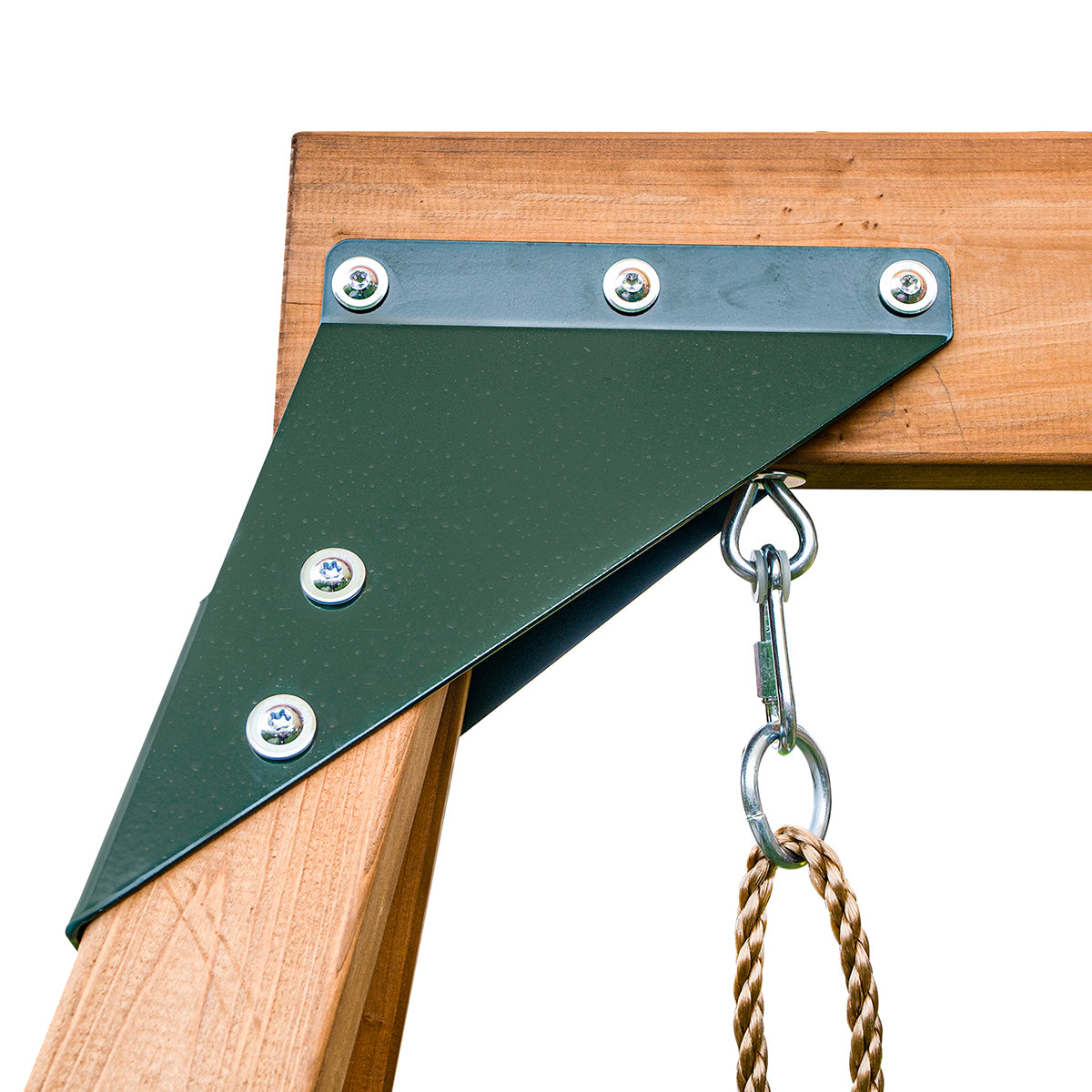 The Birmingham Play Centre Set is built to last with high strength steel brackets, ensuring maximum stability and durability. Each metal component is powder-coated, offering the best protection against the elements. This advanced coating prevents rust and wear, keeping the playset safe and looking great for years.