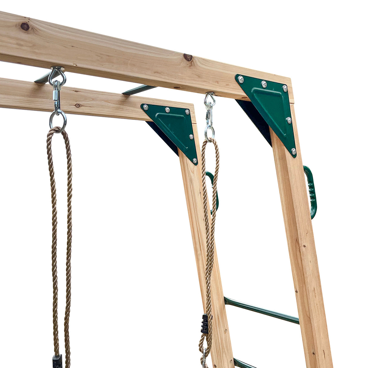 This fun and challenging set of monkey bars and swing set frame allows kids to play to their heart's content.