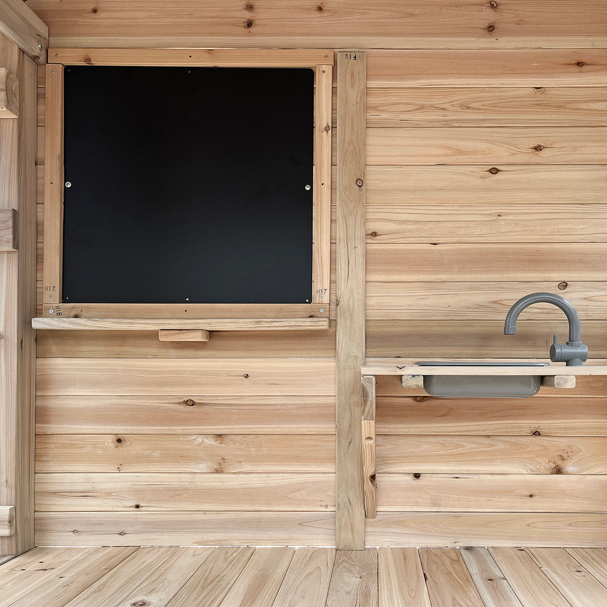 Watch their creativity grow with a fun chalkboard and in-built mini play kitchen included.