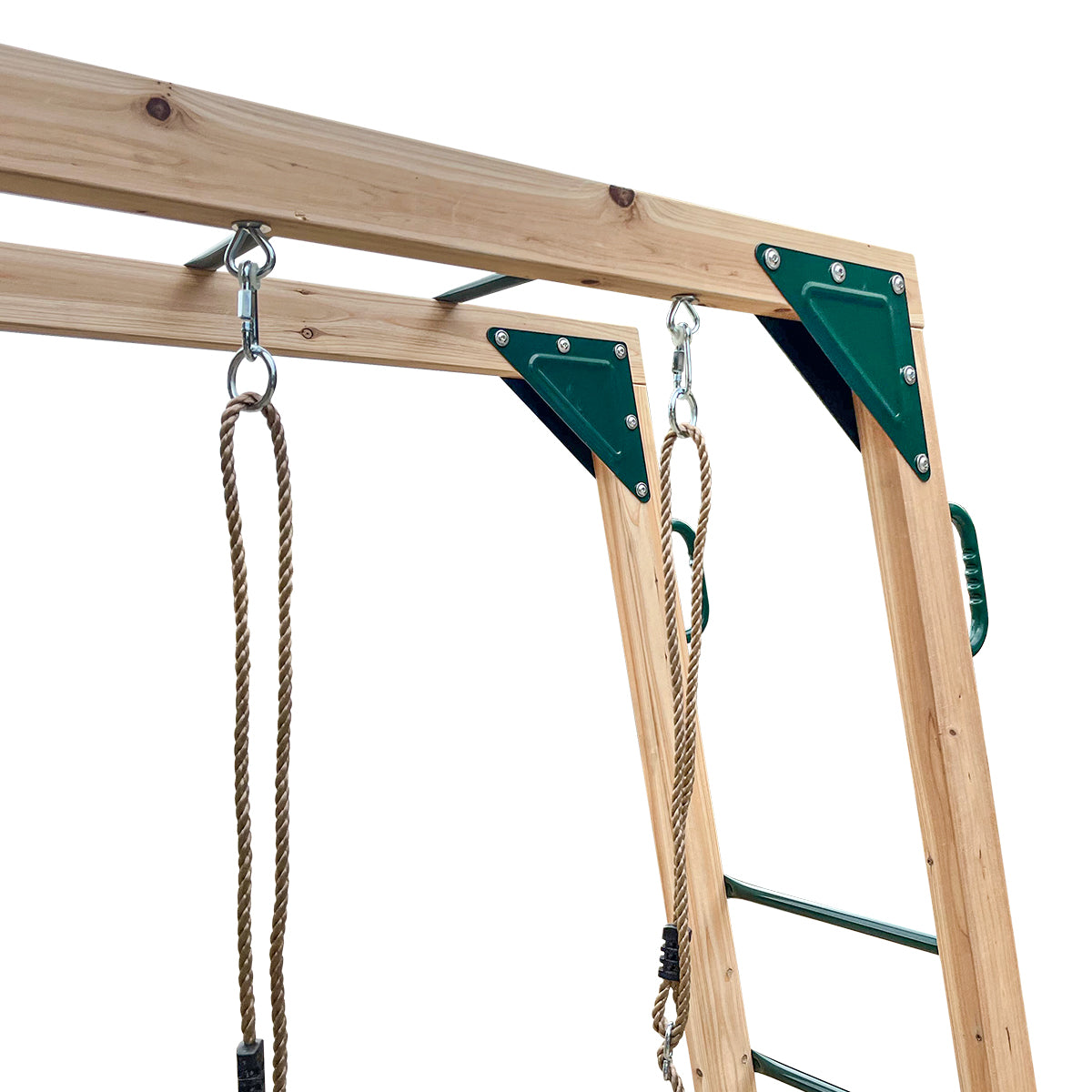 This fun and challenging set of monkey bars and swing set frame allows kids to play to their heart's content.