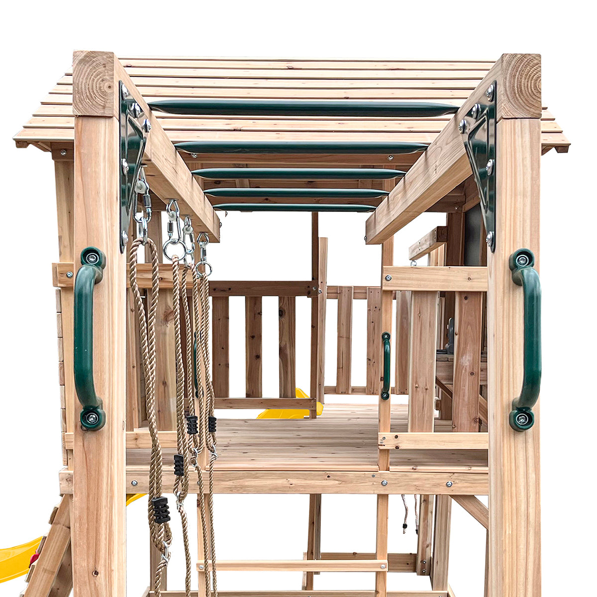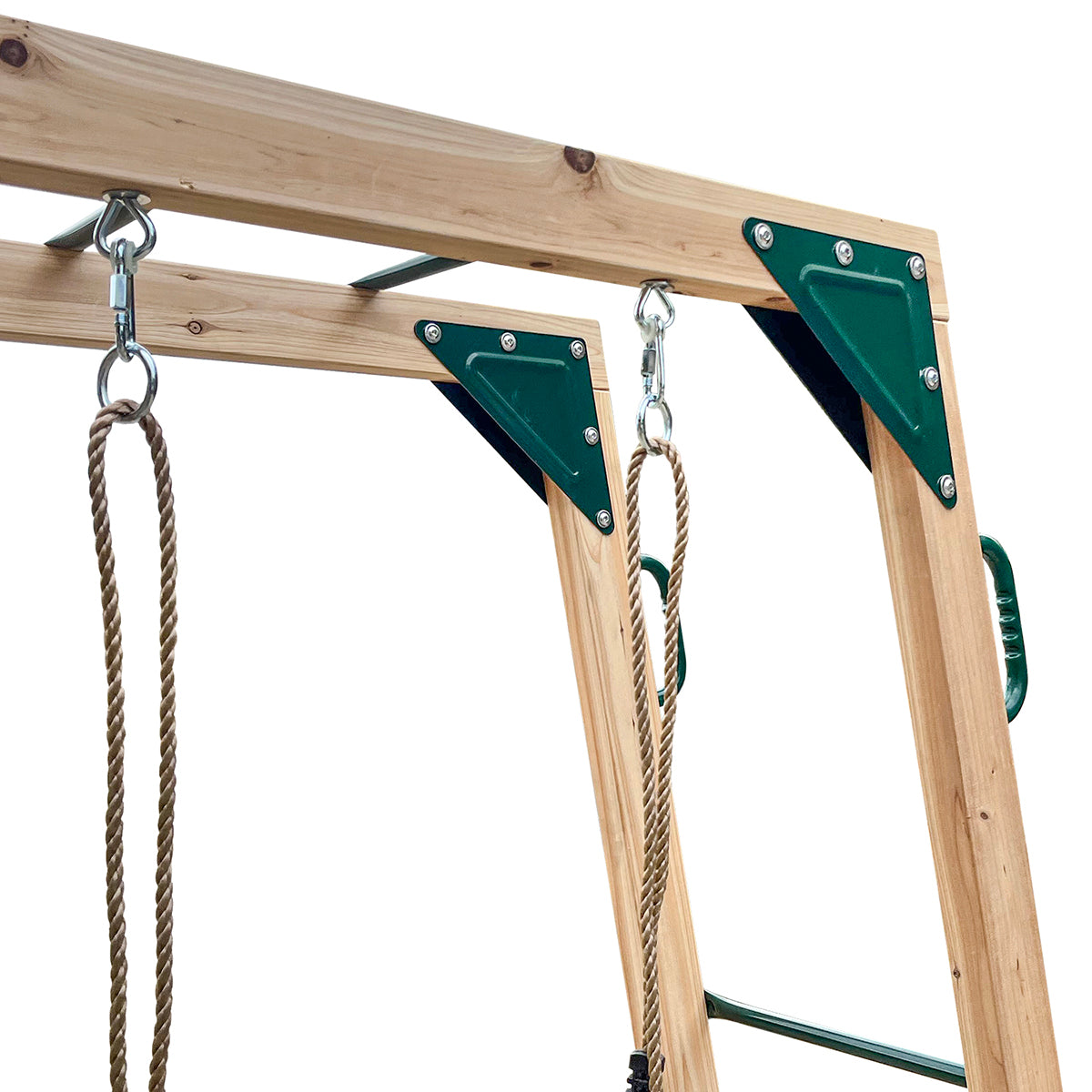 This fun and challenging set of monkey bars and swing set frame allows kids to play to their heart's content.